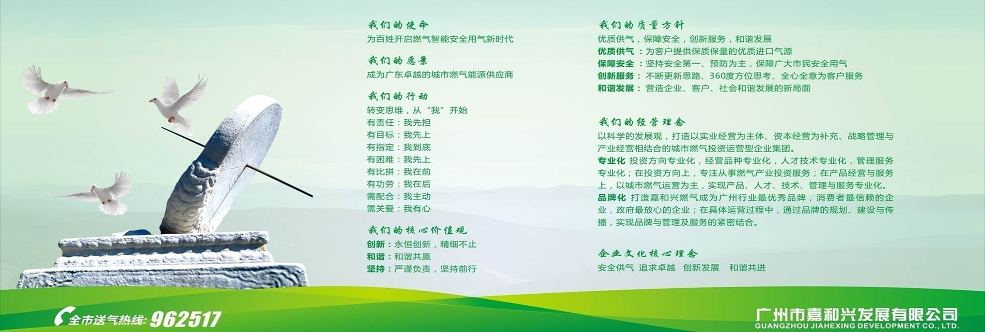 公司在廣州經(jīng)營多年的液化氣的過程中,積累了大量的行業(yè)資源,積極配合政府管理及倡導行業(yè)溝通協(xié)調。現(xiàn)在“嘉和興”已成為廣州液化氣市場的著名品牌。